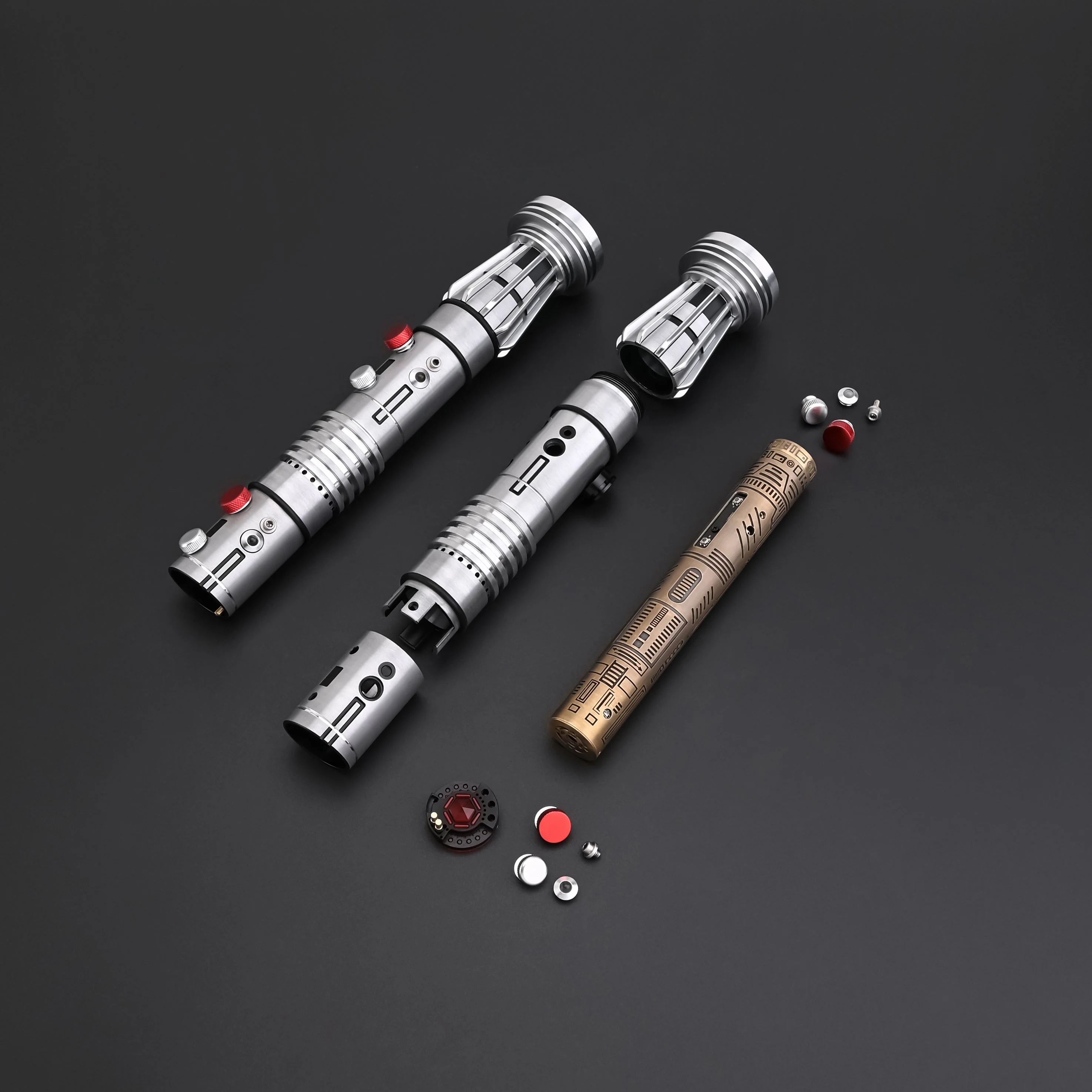 Possédez la pièce de collection ultime avec le sabre laser Darth Maul Édition Limitée, une collaboration rare entre Nsabers, TXQ et HUYANG Workshop, conçu par le célèbre Watto’s Junkyard Kai.